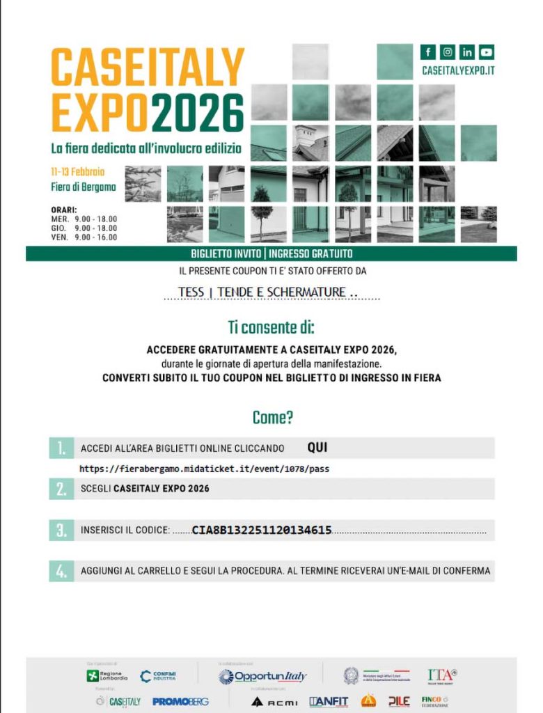 Per accedere gratuitamente a CaseItaly Expo 2026, durante le giornate di apertura della manifestazione, converti il tuo Coupon nel biglietto di ingresso della Fiera.