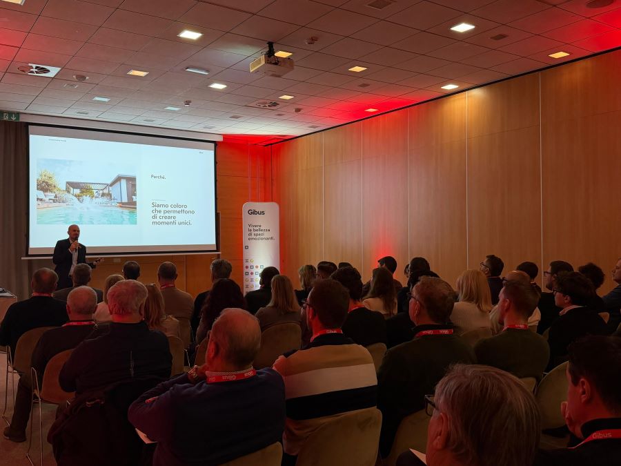 L’attenzione si è quindi spostata sull’innovazione di prodotto con l’intervento di Domenico Soda, Responsabile Vendite Italia, che ha presentato le novità 2026, tra cui la nuova tenda in trazione Nivo, la vetrata Glisse R2, la pedana Deck e la tenda Soft, soluzioni pensate per ampliare ulteriormente le possibilità progettuali e rafforzare la proposta Gibus nel segmento premium dell’outdoor design.