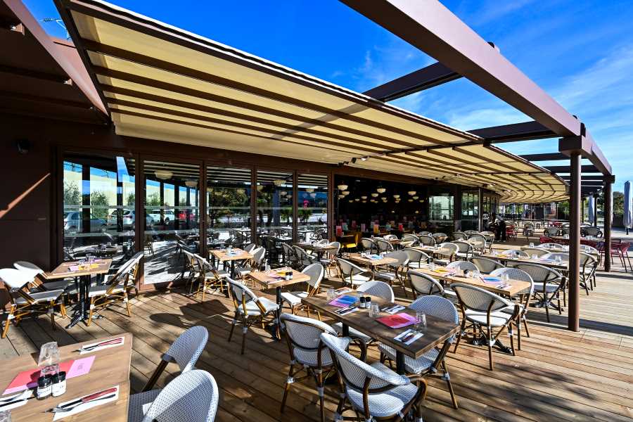Una moderna area con bar e ristoranti nella località di Colomiers, nel sud della Francia, alle porte di Tolosa, nel dipartimento dell’Alta Garonna, offre un variegato concetto di gusto su una vasta superficie. Dalla boulangerie e pasticceria con ristoranti fast food, ai pub con cucina francese, fino allo street food e alle pizzerie. I clienti vengono attratti durante tutta la giornata e in estate possono godersi un pasto rilassante anche sulla grande terrazza all’aperto. Ciò grazie a un ampio sistema di tende da sole markilux, dotato anche di radiatori termici e di un sistema di illuminazione che crea una piacevole atmosfera serale.