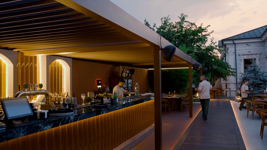 Nel cuore del centro di Craiova, lo storico ristorante Padella conquista i propri ospiti con un lounge bar all’aperto elegante e pienamente fruibile grazie all’installazione di tre pergole Joy.